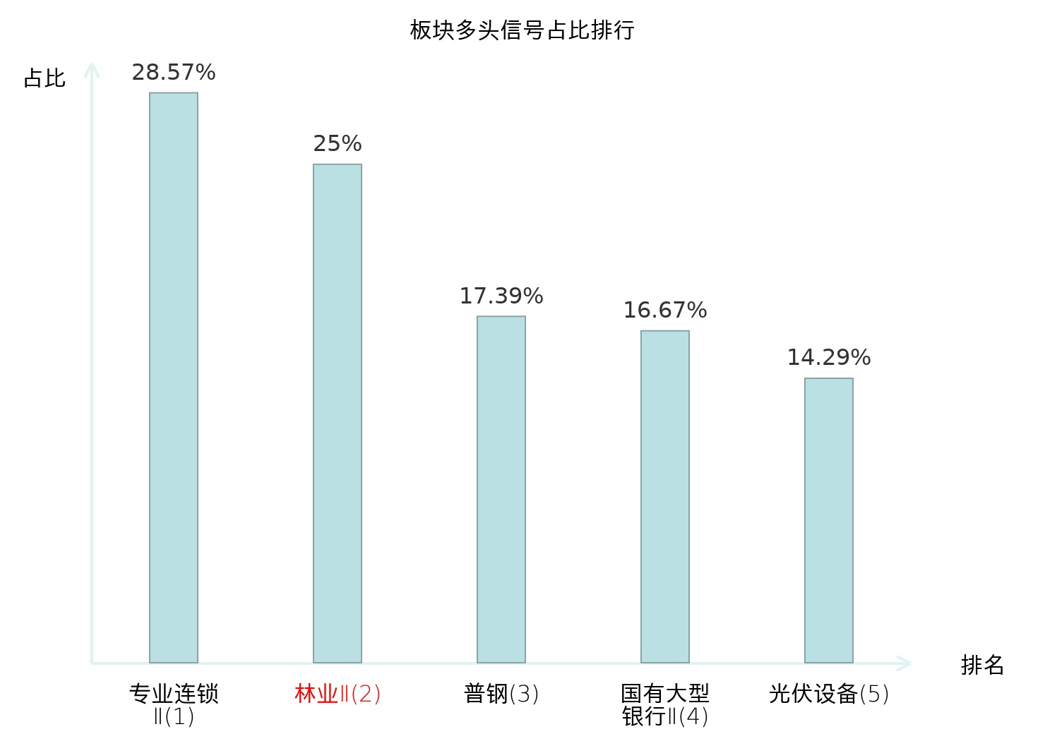 全市场所有行业板块中主力多头信号占比排名中,专业连锁Ⅱ板块位居第一。专业连锁Ⅱ板块名次提升最快,较昨日上升122位。
