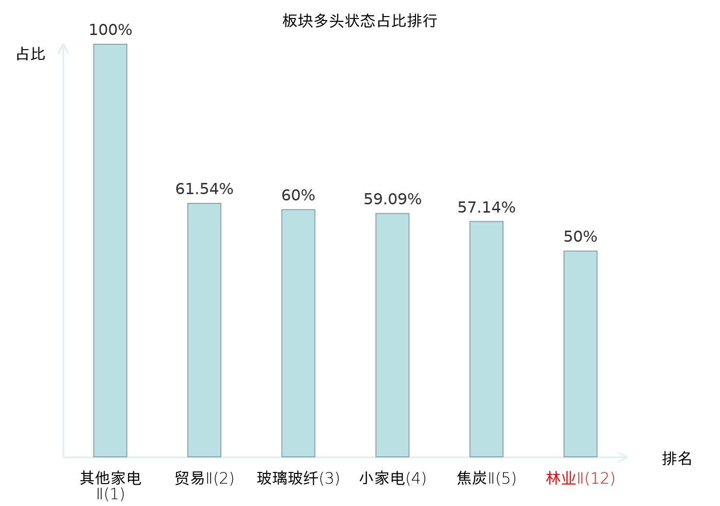 全市场所有行业板块中主力多头状态占比排名中,其他家电Ⅱ板块位居第一。摩托车及其他板块名次提升最快,较昨日上升76位。