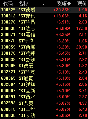 5月13日,ST板块逆市拉升,截至发稿,ST德豪、ST八菱、*ST猛狮等36股涨停,其余多股纷纷跟涨。