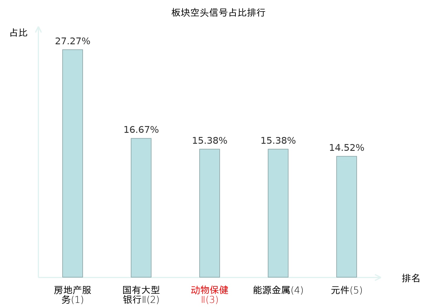 全市场所有行业板块中主力空头信号占比排名中,房地产服务板块位居第一。元件板块名次提升最快,较昨日上升122位。