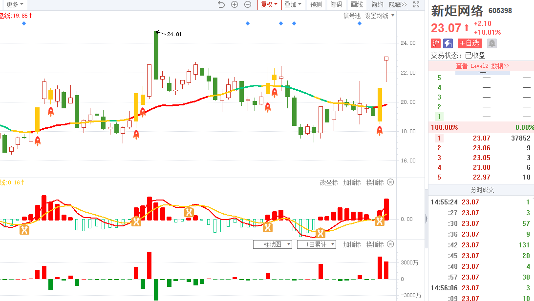 1)新炬网络-四维操盘-近期出现火箭信号且底部量柱由绿转红