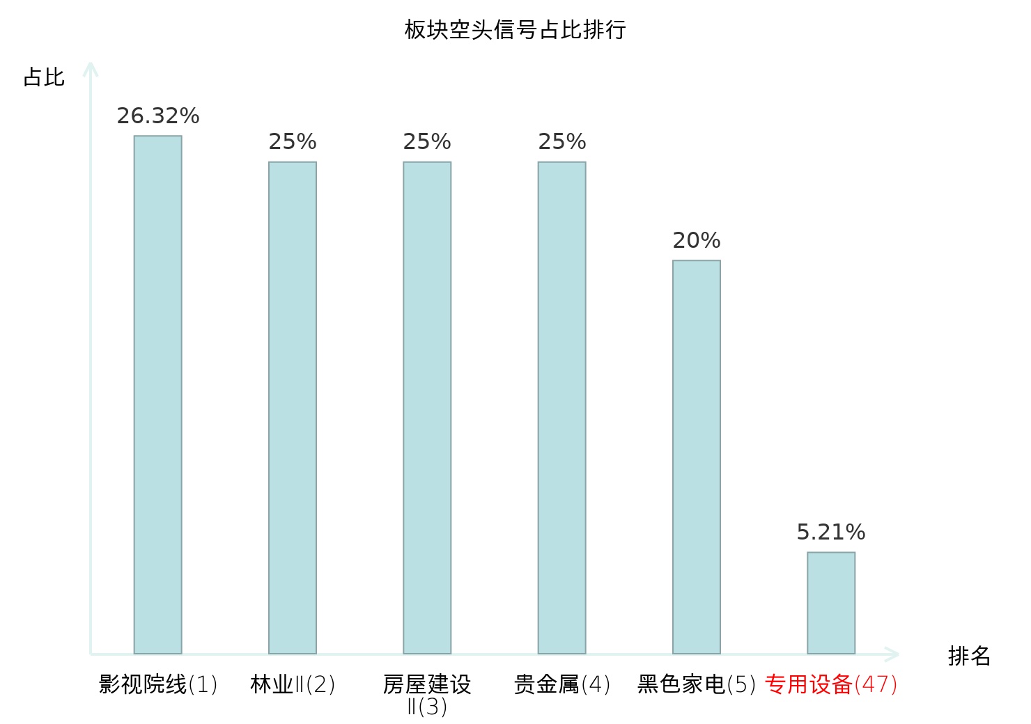 全市场所有行业板块中主力空头信号占比排名中,影视院线板块位居第一。普钢板块名次提升最快,较昨日上升115位。