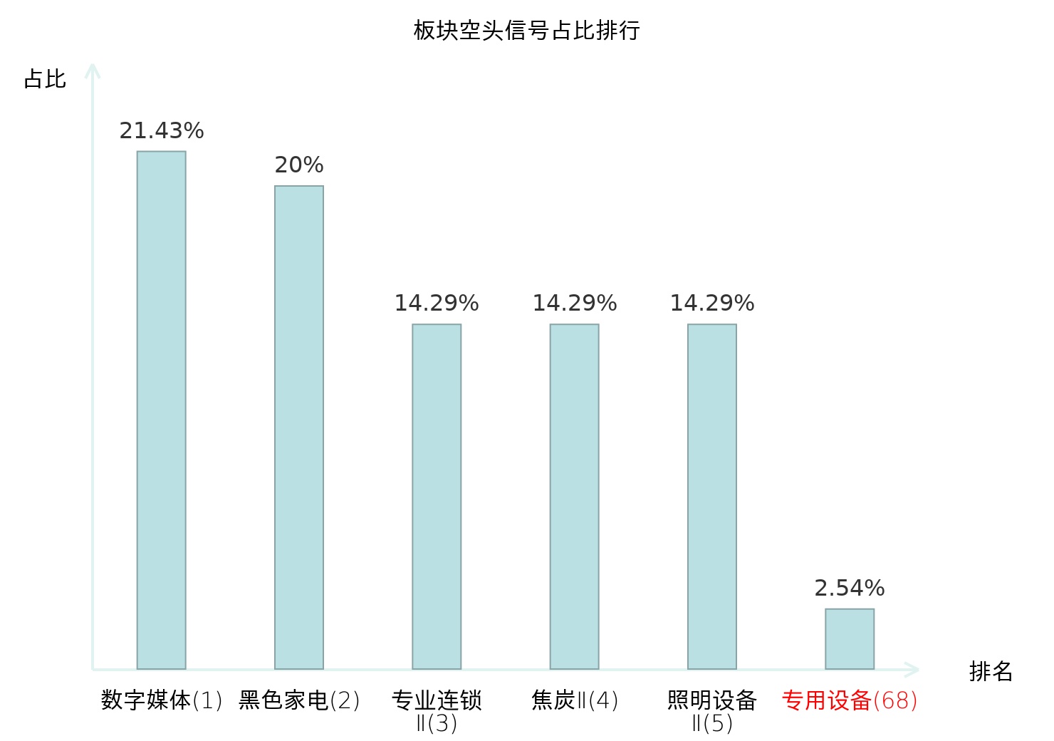 全市场所有行业板块中主力空头信号占比排名中,数字媒体板块位居第一。装修装饰Ⅱ板块名次提升最快,较昨日上升110位。