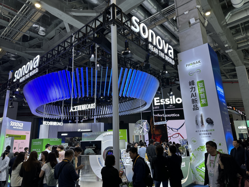 索诺瓦展台亚洲首发的峰力AI新品 图片来源:财联社记者摄