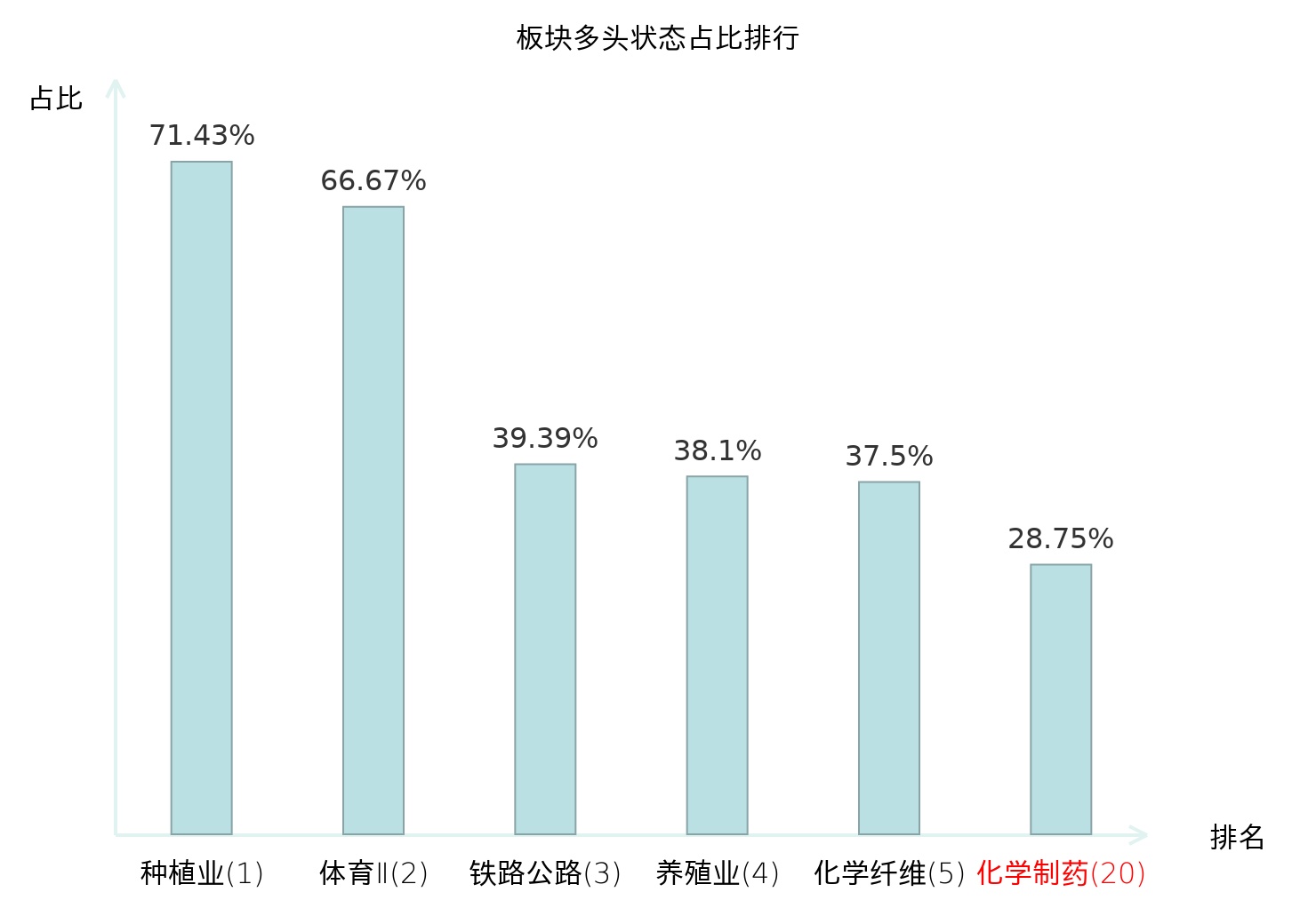从主力宝信号数据分析,双成药业所属的化学制药板块中共有46只股票处于主力多头状态,主力多头状态占比在全行业中排名第20位,较昨日上升4位。排名上升表明主力对于该板块整体看多意愿增强,为投资者提供了市场情绪和潜在投资机会的参考。全市场所有行业板块中,种植业板块的主力多头状态占比最高,位居第一;养殖业板块名次提升最快,较昨日上升99位。这些变动反映了主力资金在不同行业间的偏好调整,为投资者观察市场动态和趋势提供了重要依据。