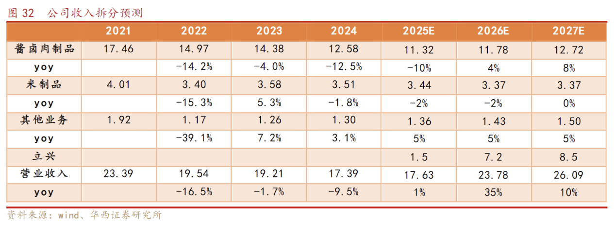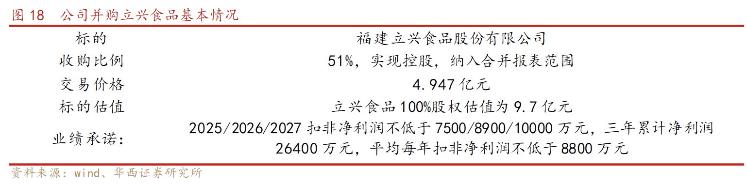 公司近年来最重要的业务边际变化是20259月完成对冻干食品龙头福建立兴的控股权收购,新增冻干食品业务板块。此举是公司向“大健康、大休闲”美食平台转型的关键战略落地,旨在打造除酱卤和米制品外的第三增长极。福建立兴2025年上半年业绩表现优异,实现营收2.51亿元,净利润4188万元,符合公司预期,为公司带来了新的增长动力。