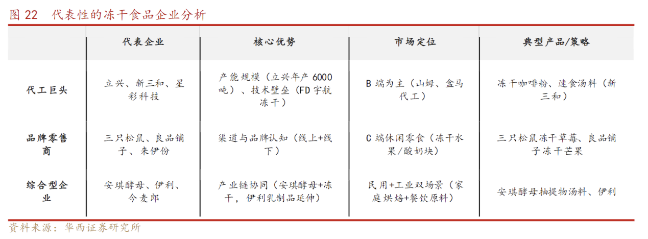 福建立兴冻干业务,技术壁垒较高。立兴作为行业标准制定者之一,拥有37条冻干生产线和42项专利技术,其产品研发和生产工艺在行业内处于领先地位,能够为山姆等高端客户提供代工服务,获取技术带来的超额收益。