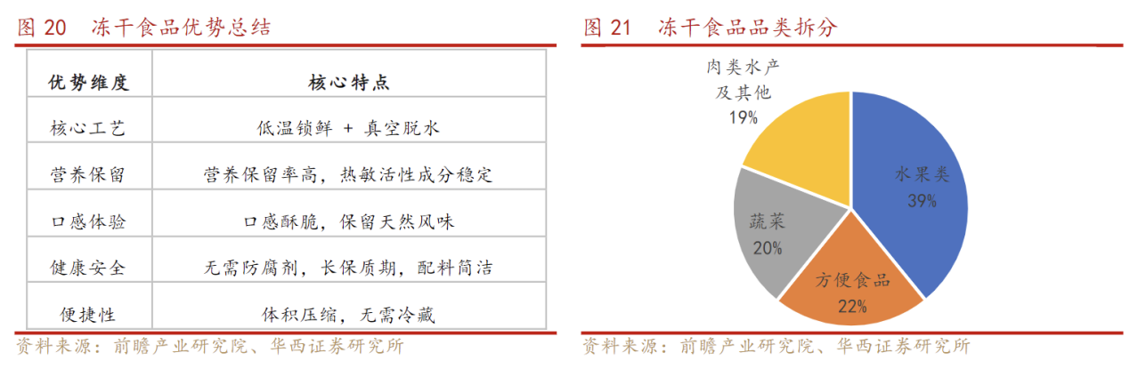 解码冻干技术核心优势,拥抱蓝海市场。冻干技术是在零下38℃左右低温环境下利用升华脱水原理、最大限度保留食材营养成分的一种物理加工过程,其优势主要表现在以下方面: