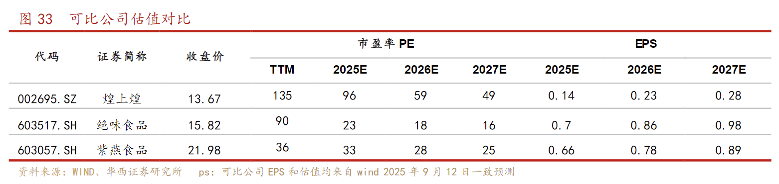 公司近期完成对冻干食品龙头福建立兴的控股权收购,并已于20259月开始并表,此举标志着公司正式切入高增长的冻干食品赛道,形成酱卤、米制品、冻干三大业务支柱。同时,公司主业正积极调整,通过升级门店模型(试点门店日销提升超40%)和成本控制,盈利能力持续改善。