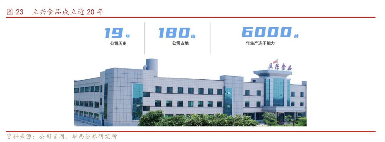行业领导地位:立兴食品是中国食品工业协会冻干食品工作委员会会长单位、特种食品工作委员会副主任单位,牵头起草多项冻干食品标准。