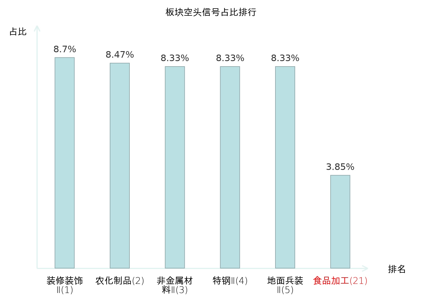 从主力宝信号数据分析,海欣食品所属的食品加工板块中共有1只股票发出主力空头信号,主力空头信号占比在全行业中排名第21位,较昨日上升101位。排名的提升可能反映了主力对于该板块卖出意愿的增强,为投资者提供了市场情绪的重要参考。全市场所有行业板块中,主力空头信号占比排名中,装修装饰Ⅱ板块位居第一。装修装饰Ⅱ板块名次提升最快,较昨日上升120位。这些变动揭示了不同行业间主力资金偏好的变化,有助于投资者理解当前市场的动态和趋势。