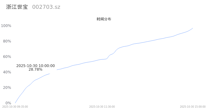 002703浙江世宝2025年10月30日成交26.57万手,成交金额3.58亿,相较昨日缩量8.21万手,换手率4.53%,成交清淡。
