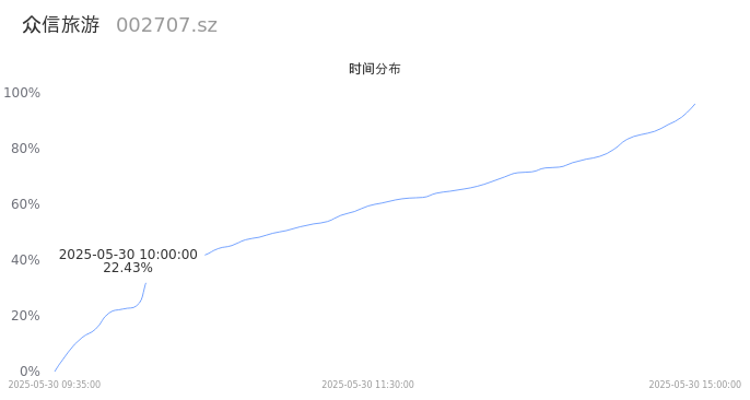 002707众信旅游2025年05月30日成交15.36万手,成交金额1.14亿,相较昨日缩量7720手,换手率1.86%,成交清淡。
