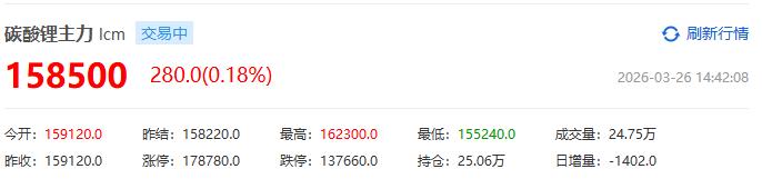 消息面上,碳酸锂期货价格连续走强。3月25日,碳酸锂期货盘中快速拉升并突破16万元/吨,主力合约收报159120元/吨,单日上涨4.34%,走出强势“三连阳”行情。