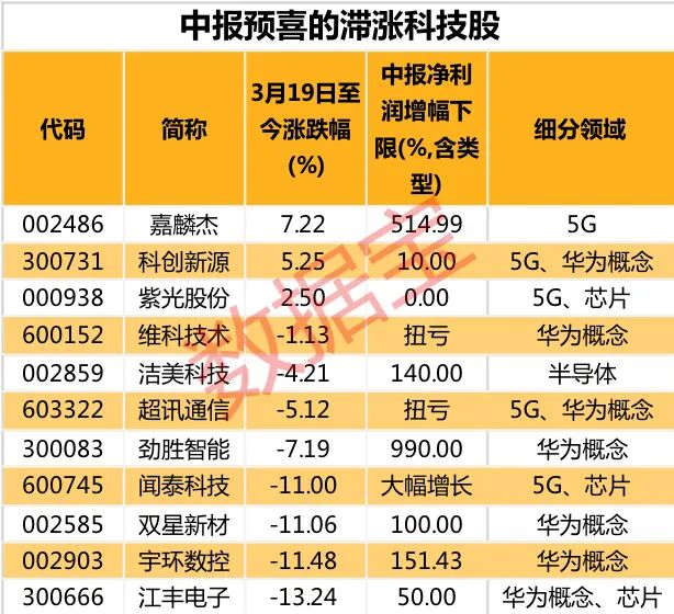 业绩预增股中,与华为有长期战略合作的劲胜智能中报净利润增幅下限几乎接近1000%,一季度净利润同比增长65%,主要受益于高端智能装备业务的大幅增长所致。自3月19日以来股价下跌7.19%,而此前2月1日至3月18日股价上涨25%。