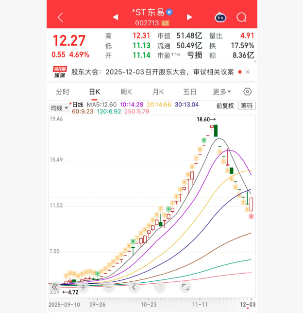 回溯过往走势,*ST东易曾凭借重整预期及算力资产注入成为资本市场焦点。9月29日起,该股开启暴涨模式,29个交易日内斩获24个涨停板,从5元附近飙升至18元以上,区间涨幅接近260%。