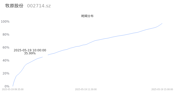 002714牧原股份2025年05月19日成交15.66万手,成交金额6.15亿,相较昨日缩量5.58万手,换手率0.41%,成交清淡。