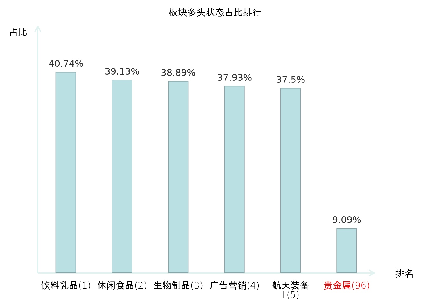 全市场所有行业板块中主力多头状态占比排名中,饮料乳品板块位居第一。国有大型银行Ⅱ板块名次提升最快,较昨日上升71位。