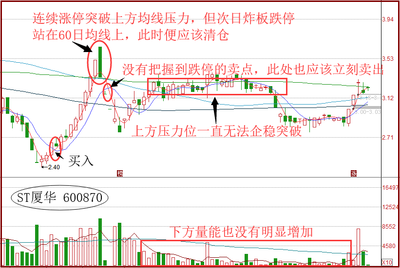 从ST厦华的走势来看,在5月28日创新低后,次日股价便突破了3日均线,此时已经可以轻仓介入,当三七金叉后,则可加仓,后续便能捕获数个涨停板,6月17炸板跌停,正是卖出时机,即使当日没有把握卖点,次日也应该果断卖出。