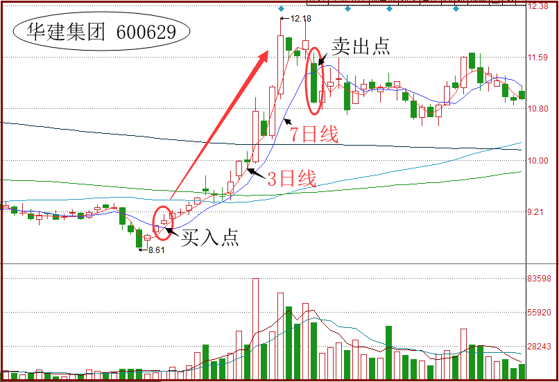 华建集团近期的走势中可以看到,当3日均线上穿7日均线时买入,再当3日线下穿7日均线的时候,则是一个不错的介入点。如果能掌握住这一点,就可以获利近20%。正是“三七金叉股成马”、“三七如果成死叉,卖出股票不管它”。该方法可以避免在盲目追涨中被深套。
