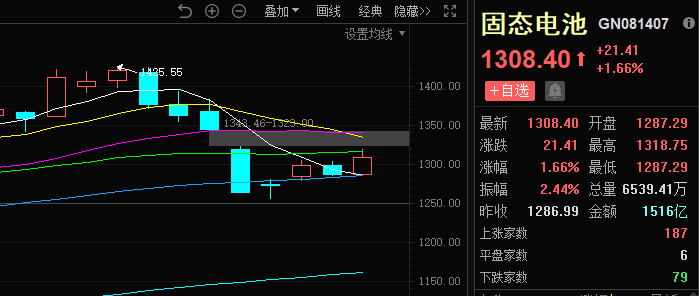 而下午异动的几个方向,固态电池、锂电方向,这个方向主要还是VC、6F的涨价引发的资金从高位科技获利切入低位涨价的逻辑。个股在普遍调整了5-8天之后一定的支撑,板块指数也一样,大涨之后回调的反弹行情,高度有限(这里20日线都没站上),大家有参与的话,明天则要注意持续性,可能和今天的CPO、国产算力一样,冲高回落。