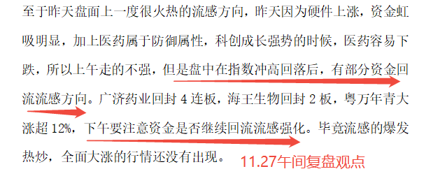 而尾盘流感方向确实如午间复盘说的在指数冲高翻绿后,资金担忧调整的风险,回流流感方向,其中风向标是特一药业,直线拉升上板,3天2板,而广济药业此前已经4板,海王生物2板,紧随其后的粤万年青,也在尾盘涨停20%,成为继金迪克后又一只连板的创业板流感票。流感方向目前有连板高度,有投机20厘米的,如果明天继续强化,后面低位补涨的也会慢慢的起来,毕竟医药有防御属性,也是我们说的流感爆发季,消息面刺激总是时不时的来一下,可以引发的上涨行情,下跌买入也是好的策略。