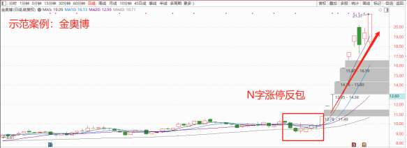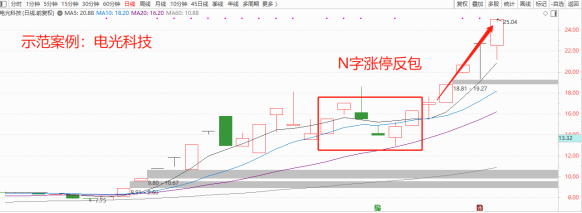 3、股价在上涨时,再次出现涨停板,形成N字;
