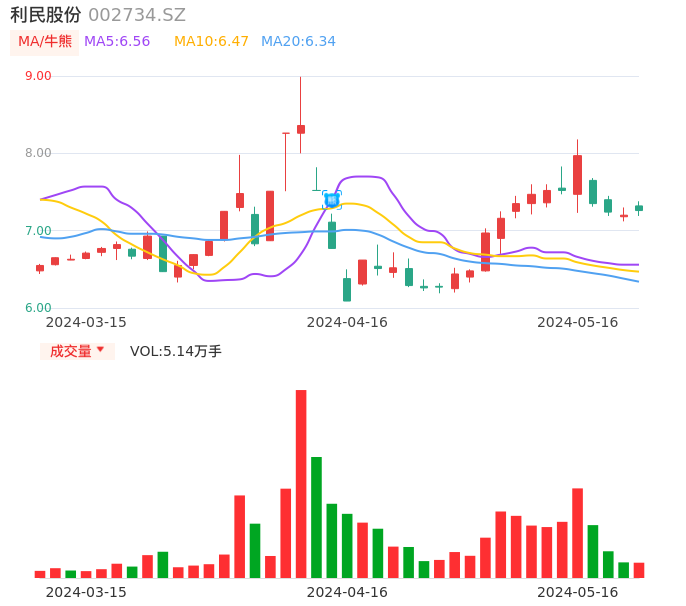 05月16日,利民股份收报7.26,股价涨幅0.83%,成交金额3740.06万元,换手率1.58%。