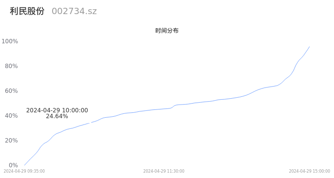 根据成交分布分析,该股票当天放量成交,成交清淡。时间上看,早盘前半小时成交量占据当天总成交量的24.64%;价格上看,成交呈现右偏峰。成交分布分析主要研究股票成交的分布特性,不具有预测功能,请知悉。
