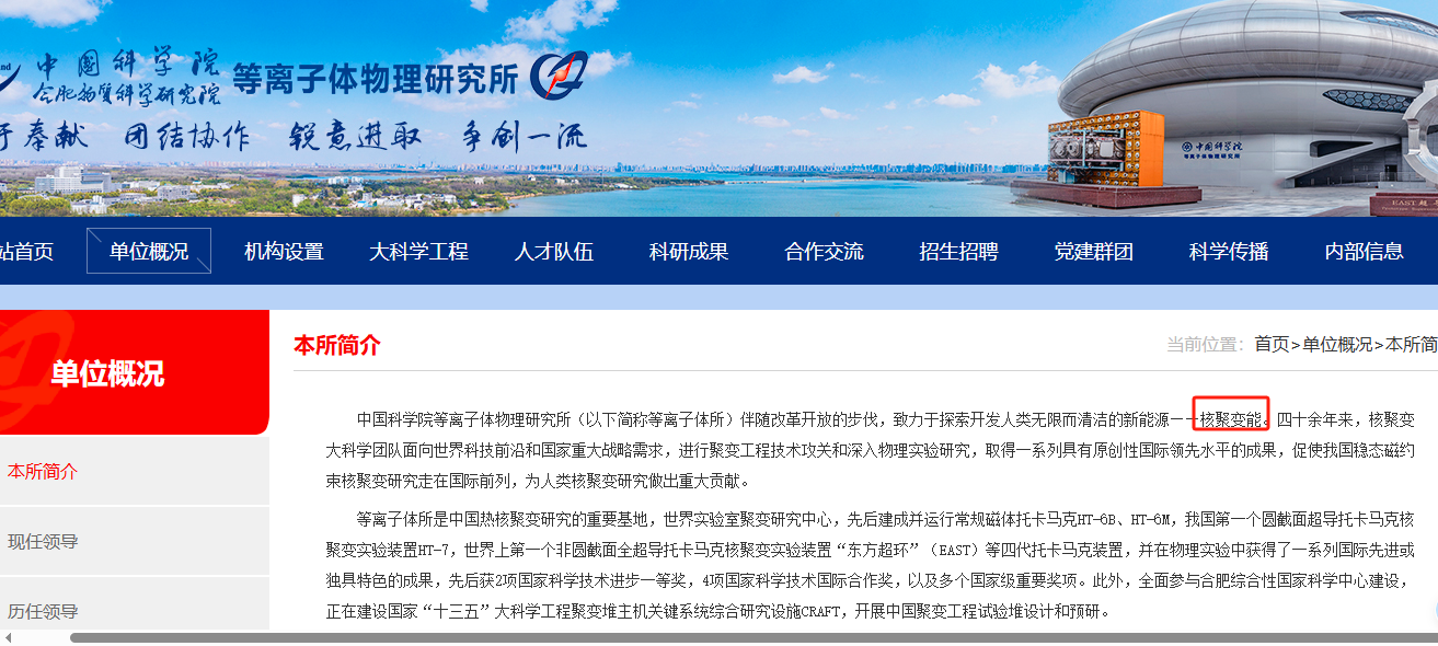 合肥物质院等离子体所(以下简称等离子体所)四十余年来致力于核聚变研究,先后建成并运行常规磁体托卡马克HT-6B、HT-6M,我国第一个圆截面超导托卡马克核聚变实验装置HT-7,世界上第一个非圆截面全超导托卡马克核聚变实验装置“东方超环”(EAST)等四代托卡马克装置。此外,该所正在建设国家“十三五”大科学工程聚变堆主机关键系统综合研究设施CRAFT,开展中国聚变工程试验堆设计和预研。