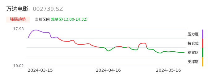 我们来看一下该股的九方特色指标强弱趋势的情况:万达电影自04月30日从持仓区下穿到观望区,股价近期持续走弱。短期已经进入空头行情,且下跌动能仍未衰竭。建议继续谨慎观望。