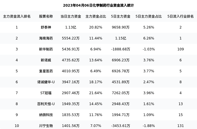 下表为今日行业内流入前10股票的信息