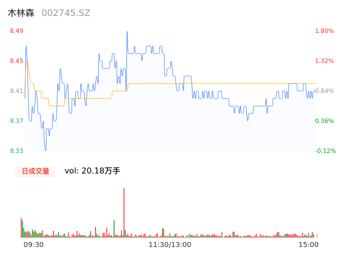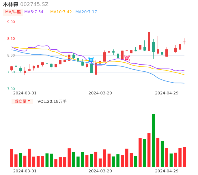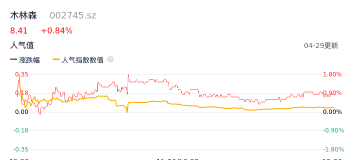 04月29日,木林森收报8.41,股价涨幅0.84%,成交金额1.70亿元,换手率2.04%。