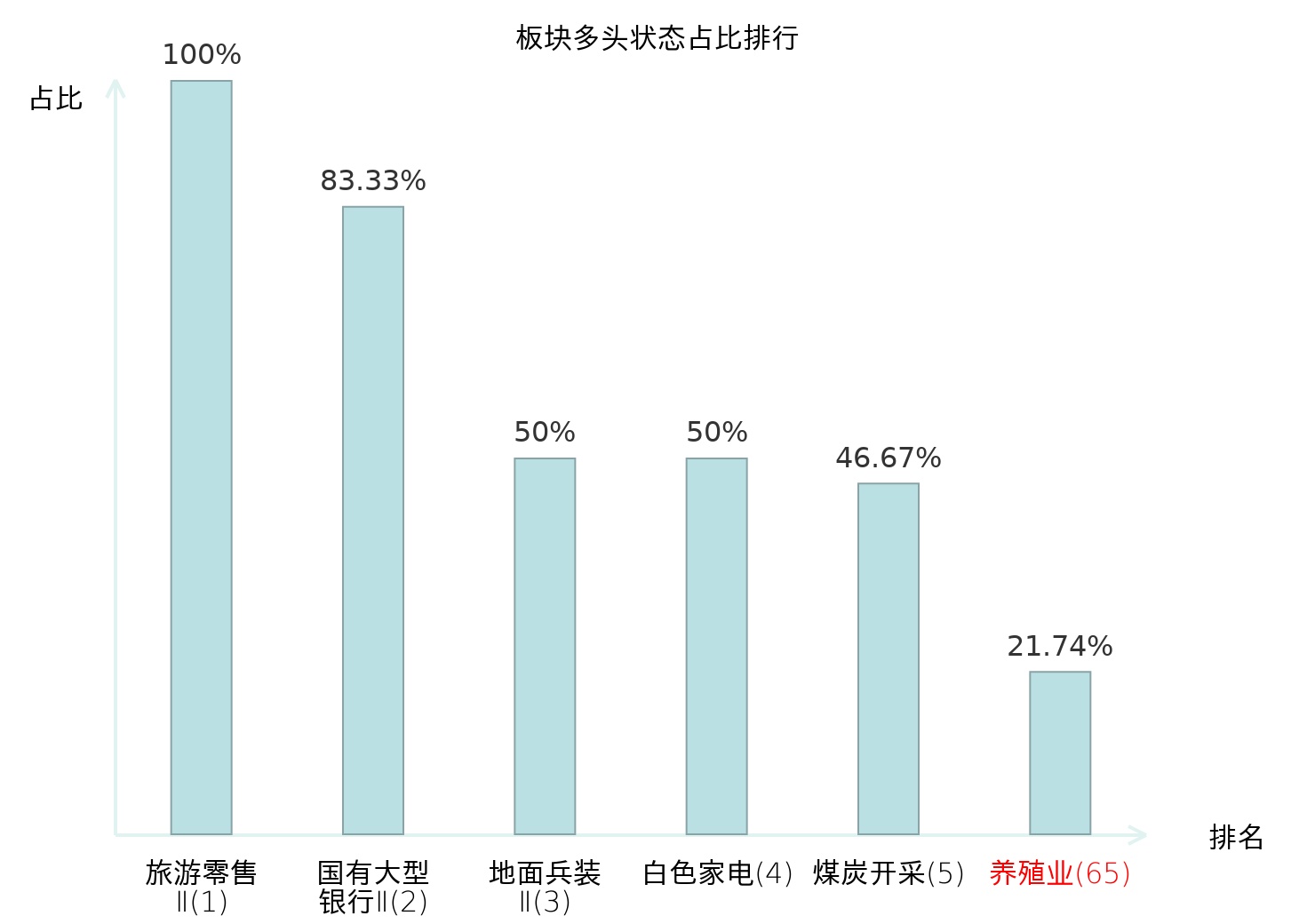 全市场所有行业板块中主力多头状态占比排名中,旅游零售Ⅱ板块位居第一。油服工程板块名次提升最快,较昨日上升107位。
