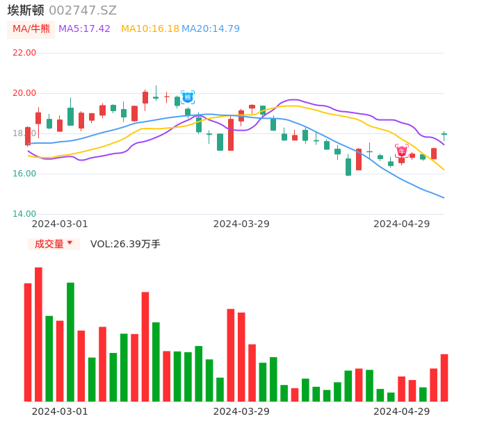 04月29日,埃斯顿收报17.94,股价涨幅4.00%,成交金额4.72亿元,换手率3.35%。