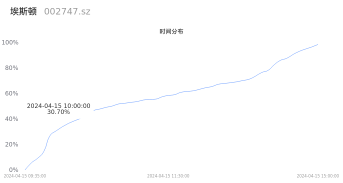 根据成交分布分析,该股票当天放量成交,成交清淡。时间上看,早盘前半小时成交量占据当天总成交量的30.7%;价格上看,成交呈现左偏峰。成交分布分析主要研究股票成交的分布特性,不具有预测功能,请知悉。