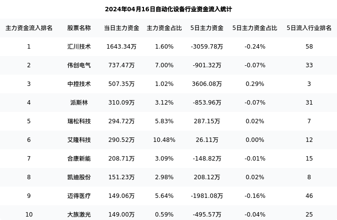 从主力资金流向来看,自动化设备行业今日主力资金流入27.98亿元,在所有申万二级行业中排名:95/131。