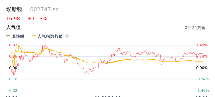 04月24日,埃斯顿收报16.98,股价涨幅1.13%,成交金额2.95亿元,换手率2.22%。