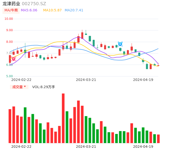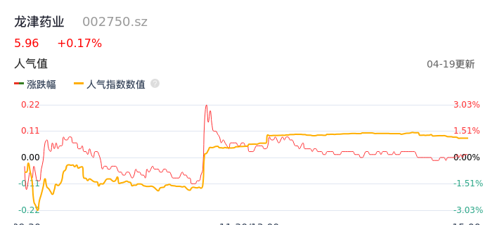 04月19日,龙津药业收报5.96,股价涨幅0.17%,成交金额4963.40万元,换手率2.08%。