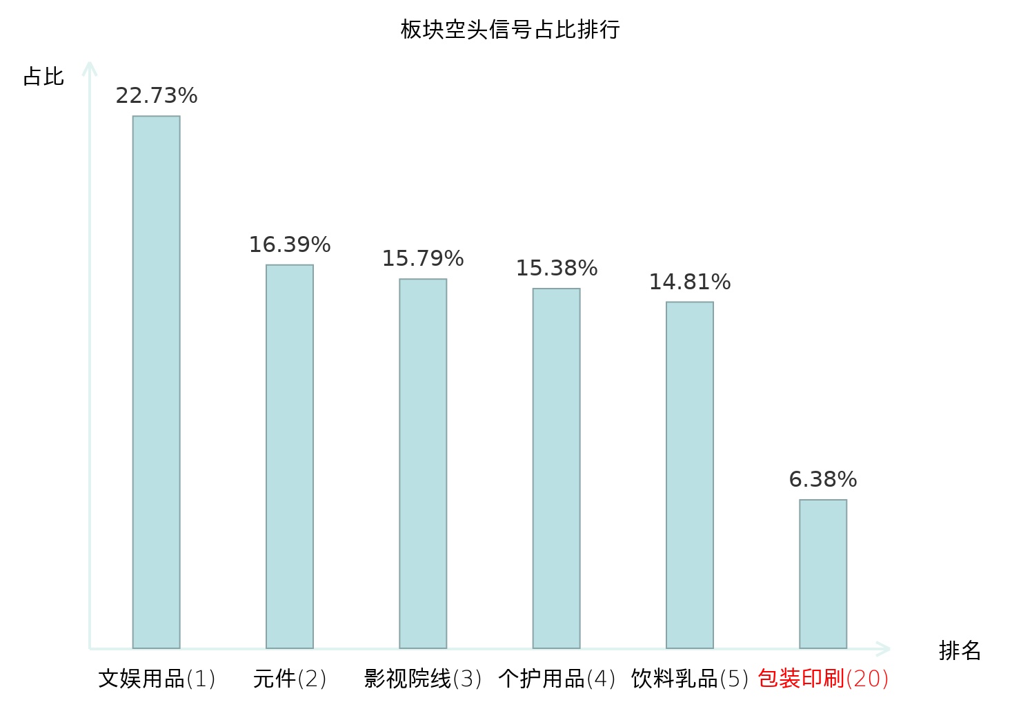 全市场所有行业板块中主力空头信号占比排名中,文娱用品板块位居第一。元件板块名次提升最快,较昨日上升128位。
