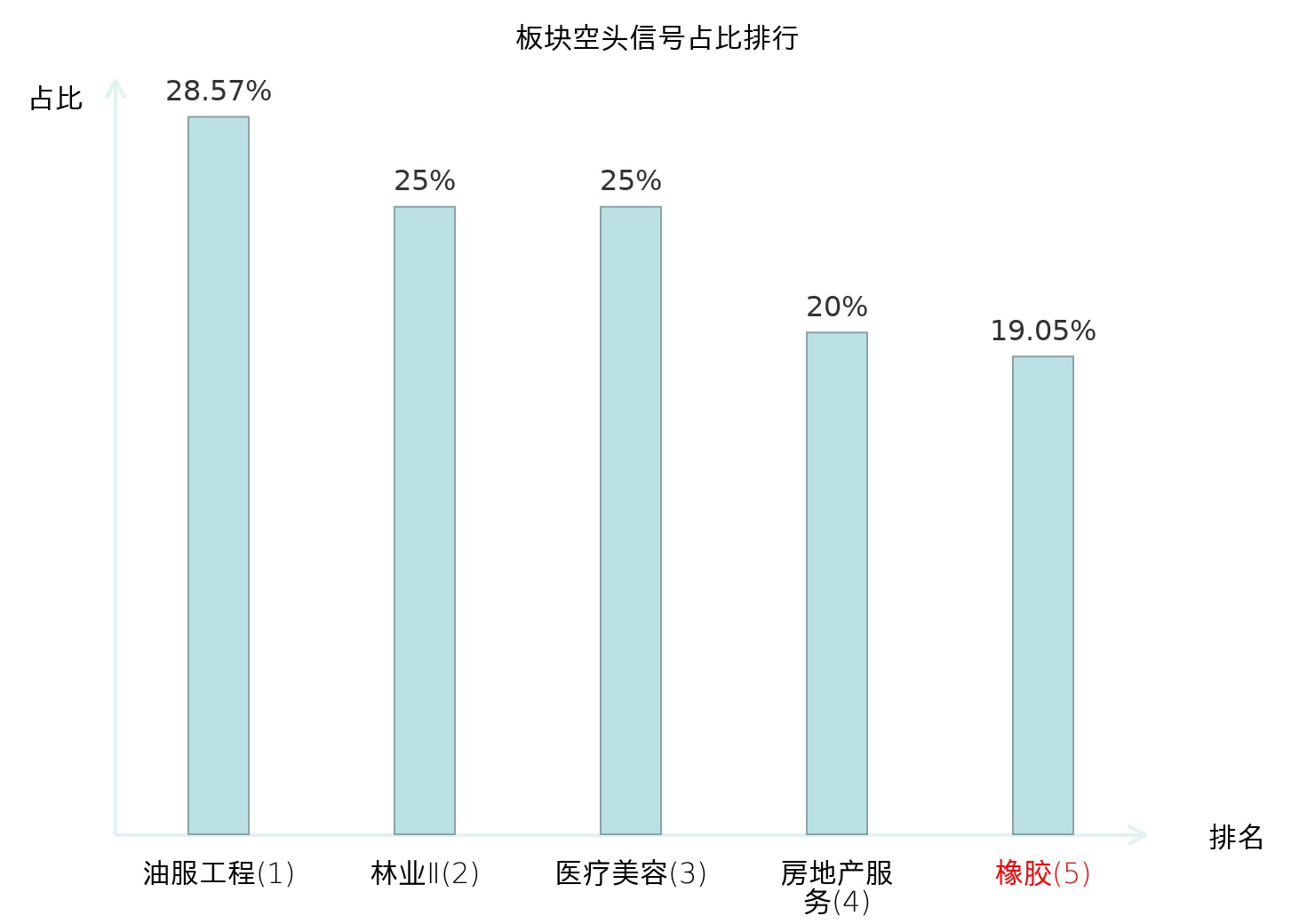 全市场所有行业板块中主力空头信号占比排名中,油服工程板块位居第一。炼化及贸易板块名次提升最快,较昨日上升102位。