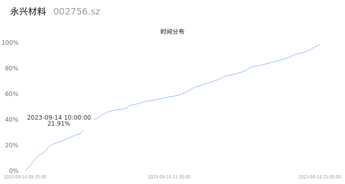 002756永兴材料2023年09月14日成交3.16万手,成交金额1.50亿元,相较昨日缩量2.31万手,换手率0.82%,成交清淡。