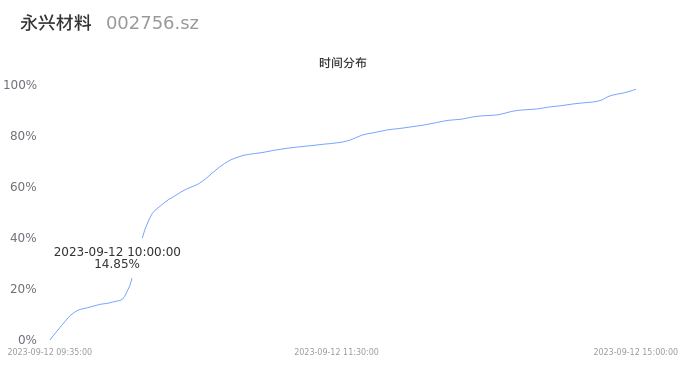 002756永兴材料2023年09月12日成交6.86万手,成交金额3.40亿元,相较昨日放量1.68万手,换手率1.78%,成交清淡。