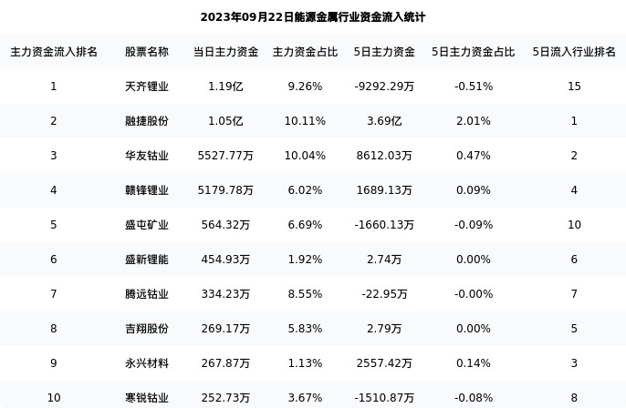 从主力资金流向来看,能源金属行业今日主力资金流入18.42亿元,在所有申万二级行业中排名:53/131。