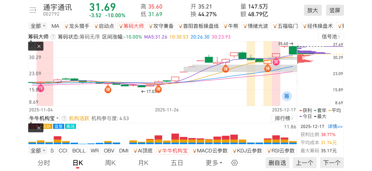 1)20251217-通宇通讯-002792-【筹码大师】和【牛牛机构宝】-近期出现弹信号且底部量柱由绿转红