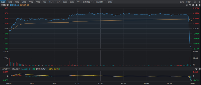 财联社12月19日讯(编辑 梓隆),今日(12月19日),市场多只高标股尾盘回撤。其中,福建板块龙头平潭发展5分钟内从近5%涨幅直线跳水至超7%跌幅,日内振幅高达14.63%,股价上演“坐滑梯”式急跌。