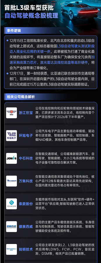 事件催化1:我国首批L3自动驾驶车型获准上路 长安深蓝SL03与极狐阿尔法S(L3版)入选,将在北京、重庆指定区域试点