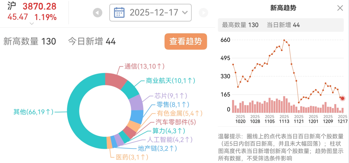 从百日新高去看,板块新高数量前4:通信(CPO)>商业航天>芯片>零售