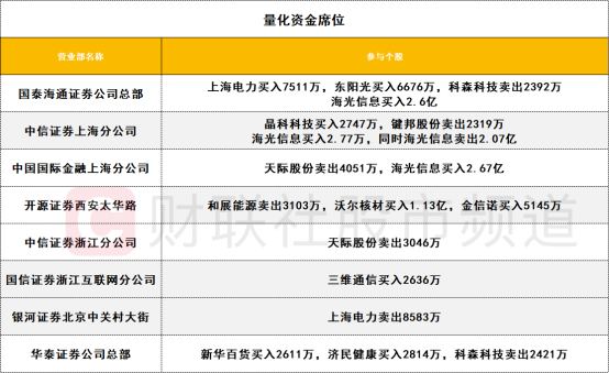 量化资金活跃度一般,海光信息获三家量化席位大量买入,值得注意的是,该股遭中信证券上海分公司大幅做T。