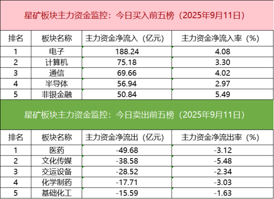 板块资金流出方面,医药板块主力资金净流出居首。